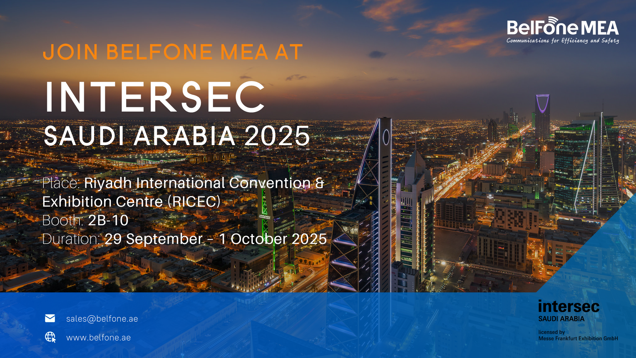 Riyadh, Saudi Arabia – 29 September to 1 October 2025 – BelFone Communications MEA is pleased to announce its participation at Intersec Saudi Arabia 2025, the region’s leading platform dedicated to security, safety, and emergency response innovation. The exhibition will be held at the Riyadh International Convention & Exhibition Centre (RICEC), and BelFone will welcome visitors at Booth 2B-10.